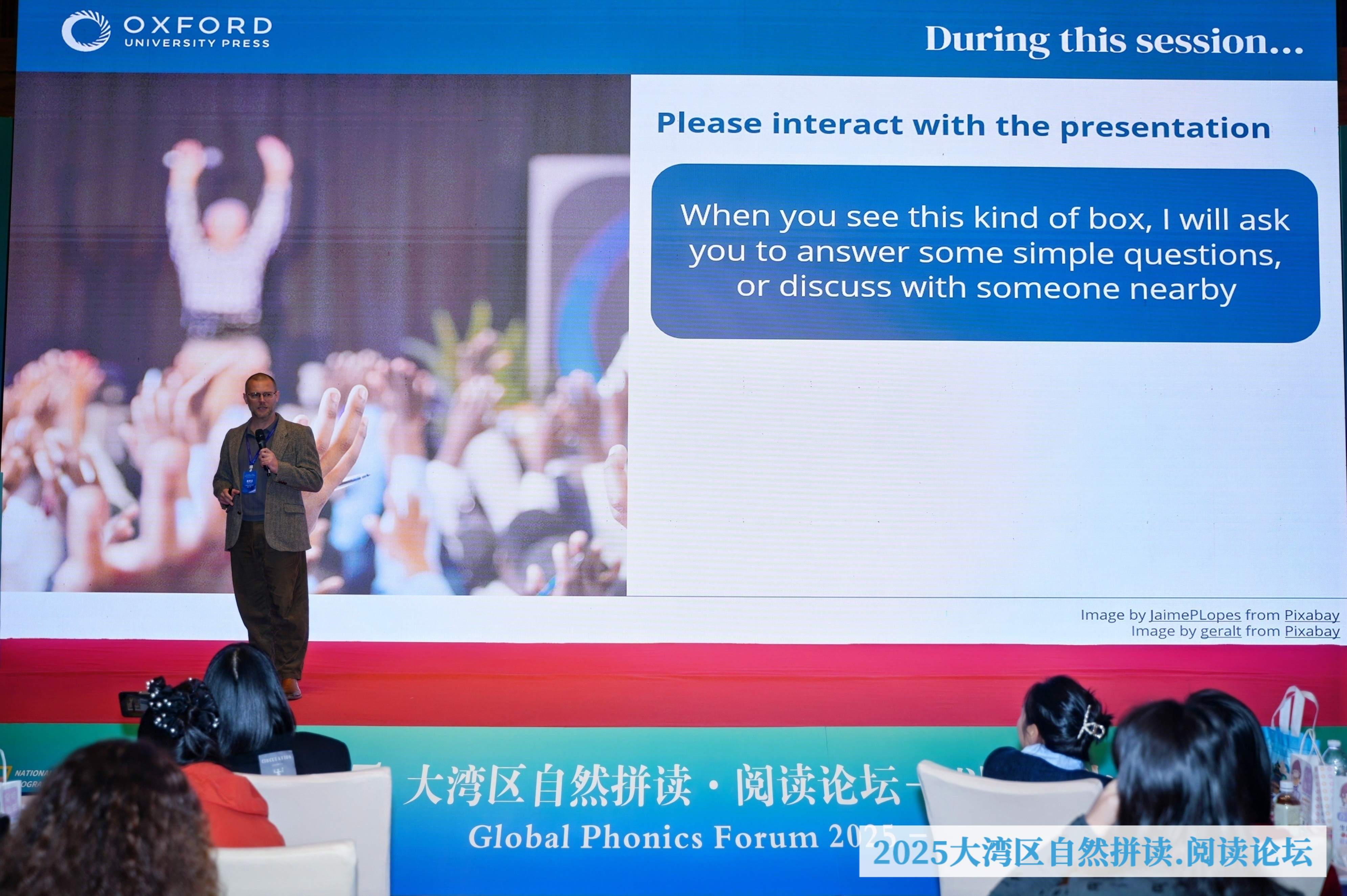 牛津大学出版社(中国)高级职业发展顾问 Luke Nestler 现场为大家解码ESL与母语中自然拼读教学的认知差异及实践,并邀请现场老师互动。